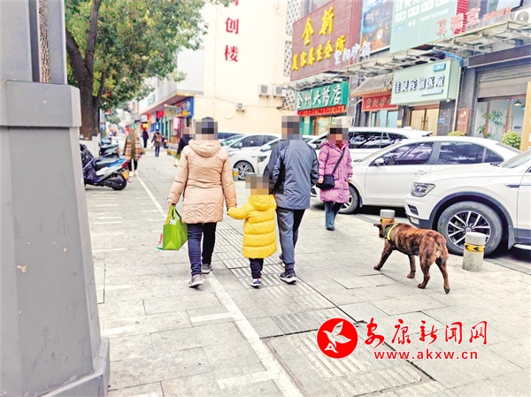 1月30日,安康城區(qū)巴山西路有市民遛狗不栓狗繩。鄭時根 攝……