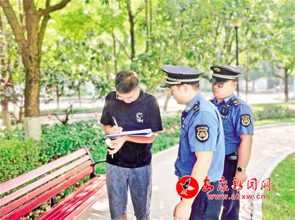11月6日,漢濱區(qū)城管執(zhí)法人員在金州路開展糾治隨地吐痰專項執(zhí)法,對隨地吐痰人員提示改正,并根據(jù)相關(guān)規(guī)定進行處罰。市創(chuàng)文辦供圖……