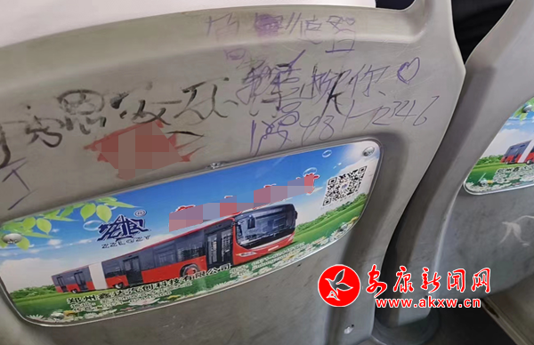 7月7日,筆者乘坐安康市城區(qū)7路公交車發(fā)現,公交座椅靠背慘遭“涂鴉”,內容不乏廣告標語、低俗粗鄙、不堪入目的語言,嚴重影響乘車心情。希望廣大乘客文明乘車,……
