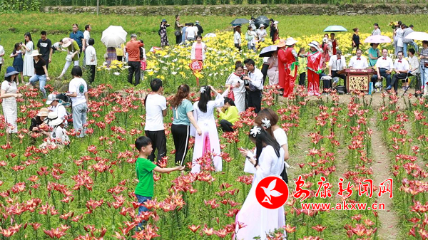 整場活動包括了文藝演出、旗袍秀、花田書法、模特攝影、太極表演、藝術(shù)插花、品嘗百合粥等內(nèi)容。游人穿梭于花海之中,擺出各種拍照造型,恨不得將整片花海都裝進他們的鏡頭中。