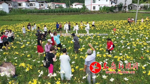 活動當天氣晴空萬里,天空中飄著朵朵白云,將滿園的百合花映襯得格外嬌艷。十里八村的鄉(xiāng)親們還有遠道而來的客人齊聚湘坪村,共赴這場百合花的盛宴。