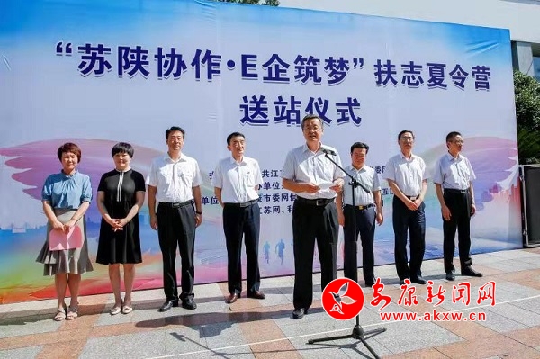 本網(wǎng)訊(記者 張世虎)8月12日下午,“蘇陜協(xié)作·E企筑夢(mèng)”扶志夏令營(yíng)送站儀式在安康火車站舉行,來(lái)自我市的30名優(yōu)秀學(xué)生和5位老師踏上奔赴南京列車,將開啟一段美好的研學(xué)之旅。省委網(wǎng)信辦副主任黃永宏,安康市委常委、宣傳部長(zhǎng)羅雪劍出席并講話。