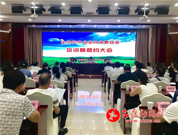 本網(wǎng)訊(實(shí)習(xí)記者 李隆均 馬娟 通訊員 崔世偉)8月22日,安康市農(nóng)業(yè)農(nóng)村局召開農(nóng)產(chǎn)品定向消費(fèi)扶貧培訓(xùn)暨采購(gòu)合同簽約會(huì),全市58家農(nóng)業(yè)企業(yè)、合作社參加了會(huì)議,其中20家農(nóng)業(yè)企業(yè)、合作社現(xiàn)場(chǎng)展示了我市生態(tài)富硒農(nóng)產(chǎn)品。