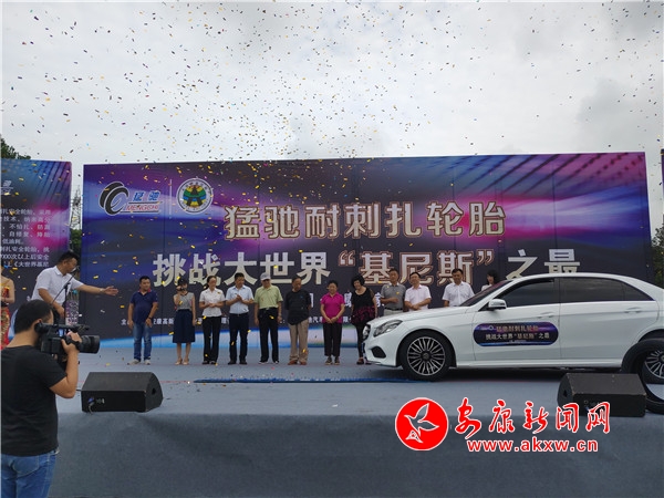 本網(wǎng)訊(記者 張世虎)單胎扎釘7700次后,且安全行駛202公里。8月28日,猛馳耐刺扎輪胎挑戰(zhàn)“大世界基尼斯之最”活動(dòng)在安康高新區(qū)舉行。在公證人員的公證下,猛馳耐刺扎輪胎現(xiàn)場(chǎng)成功完成挑戰(zhàn)。據(jù)了解,9月10日,大世界基尼斯工作人員將來(lái)安康為其頒發(fā)挑戰(zhàn)證書(shū)。