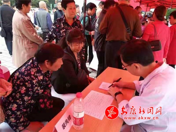 救心義診活動開始后,參展醫(yī)院工作人員現(xiàn)場發(fā)放宣傳單,提供專家義診咨詢,并為市民免費測血壓,測血糖,義診免費贈藥;顒蝇F(xiàn)場測血壓、血糖,領(lǐng)取贈藥的群眾排起長隊,醫(yī)護(hù)人員主動攙扶行動不便的老人,耐心進(jìn)行心血管疾病的防治及健康生活常識指導(dǎo)。