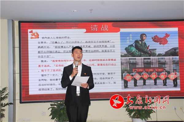 本網(wǎng)訊(記者 張世虎 張喬)青春心向黨,建功新時(shí)代;戰(zhàn)“疫”路上,感謝有你。4月26日, 我市戰(zhàn)“疫”青春故事宣講報(bào)告預(yù)賽活動在安康日報(bào)社成功舉辦,來自全市各縣區(qū)的37名選手講述了自己和身邊感人的戰(zhàn)“疫”故事。