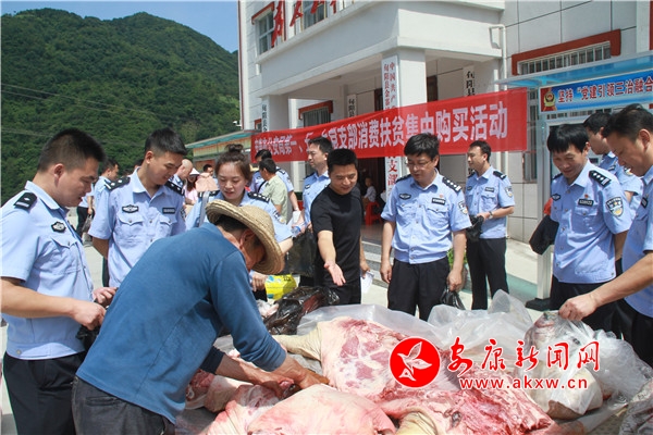 經(jīng)過前期充分對接,集中購買活動現(xiàn)場氣氛熱烈,幫扶群眾準(zhǔn)備的生豬、木耳、香菇、土豆、原釀酒等農(nóng)產(chǎn)品很快就被購買一空。銷售現(xiàn)場黨員民警、輔警們爭做愛心幫扶先鋒,積極購買扶貧產(chǎn)品,以實際行動助力消費扶貧,據(jù)統(tǒng)計,本次集中購買活動共購買農(nóng)戶豬肉210斤,原釀酒170斤,木耳、香菇50斤,土豆1200斤,其它各類干菜200余斤,總計價值13000余元。