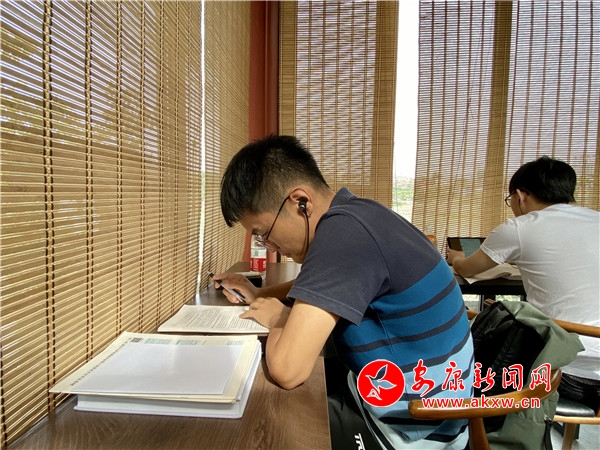 正在龍舟文化園閱讀吧內(nèi)看書的趙浩文是中南大學(xué)大一的學(xué)生,今年暑假他常常泡在閱讀吧學(xué)習(xí),“我一般早上八點(diǎn)鐘過來學(xué)習(xí)看書,中午吃個飯,然后看書看到下午六點(diǎn)多回家。每天都在學(xué)習(xí)英語知識以及預(yù)習(xí)大二的一些課程,感覺在閱讀吧學(xué)習(xí)很安靜,而且里面裝有空調(diào),環(huán)境好,F(xiàn)在有些場所恢復(fù)了24小時的自助服務(wù),也滿足了我們夜間讀書的需求。閱讀吧是我們這些學(xué)生學(xué)習(xí)和備考的理想場所。”