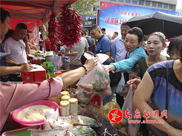 本網(wǎng)訊(記者 張世虎 通訊員 張昊 吳亞君)為深入貫徹落實(shí)中省市消費(fèi)扶貧工作部署要求,進(jìn)一步提升漢濱全區(qū)消費(fèi)扶貧工作質(zhì)量水平,9月15日,漢濱區(qū)“消費(fèi)扶貧月”活動(dòng)啟動(dòng)儀式暨扶貧產(chǎn)品采購(gòu)活動(dòng)在漢濱區(qū)中心廣場(chǎng)啟動(dòng)。來(lái)自漢濱區(qū)各級(jí)幫扶單位負(fù)責(zé)人,各鎮(zhèn)辦主要負(fù)責(zé)人,漢濱區(qū)消費(fèi)扶貧領(lǐng)導(dǎo)小組各成員單位主要負(fù)責(zé)人,貧困村第一書(shū)記等共計(jì)1300余人參加活動(dòng)。