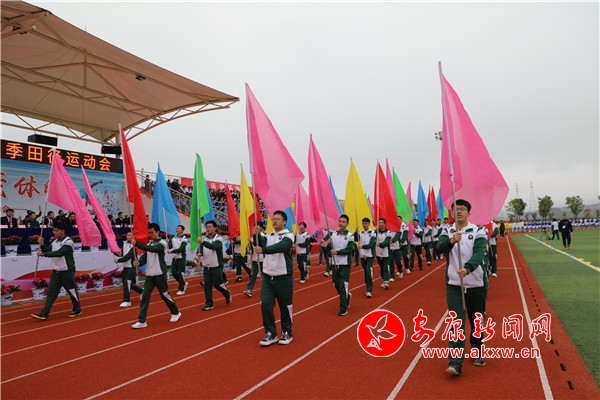 大會現(xiàn)場,伴隨著激昂雄壯的《運動員進行曲》的響起,高大挺拔的國旗方隊、色彩鮮明的;辗疥、充滿個性的會徽標(biāo)志牌方隊、英姿颯爽的鼓號隊、五顏六色的彩旗隊等一一登場。國旗方隊個個精神抖擻,步伐矯。恍;辗疥牫錆M時代氣息和生機勃勃;會徽標(biāo)志牌隊內(nèi)個性的會徽有著“文明精神、野蠻體魄”的寓意;鼓號隊奏響出時代強音,吹響嘹亮的樂章;彩旗隊內(nèi)鮮艷的旗幟象征著莘莘學(xué)子明天的輝煌。接著各班級代表方陣邁著鏗鏘有力的步伐,喊著響亮的口號,精神飽滿地通過主席臺接受檢閱。各班代表隊表演出精心準(zhǔn)備的小節(jié)目,以各式各樣的創(chuàng)意表演與精彩舞蹈引得現(xiàn)場陣陣歡呼,展示出運動會獨特的歡樂與魅力,他們以蓬勃向上、團結(jié)進取、活力無限的精神面貌譜寫著萃萃學(xué)子的奮斗詩篇。