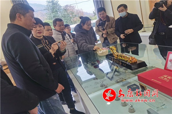 采訪團(tuán)一行首先到達(dá)安康市石泉縣池河鎮(zhèn),該鎮(zhèn)著力圍繞“鎏金銅蠶”打造“金蠶文化。其中,“鎏金銅蠶”文創(chuàng)產(chǎn)品展銷中心是陜西歷史博物館授權(quán)掛牌的全省首家縣級(jí)鎏金銅蠶文創(chuàng)產(chǎn)品展示推廣中心,也是國(guó)內(nèi)首家以鎏金銅蠶文化為內(nèi)核打造的文創(chuàng)展銷平臺(tái)。明星旅游村屬于金蠶小鎮(zhèn)打造的農(nóng)桑體驗(yàn)版塊,該村依托蠶桑產(chǎn)業(yè)和鎏金銅蠶文化,積極探索“農(nóng)旅融合”“文旅融合”模式,大力開發(fā)鄉(xiāng)村旅游。目前,已累計(jì)投資8000萬(wàn)元,建成桑園6000余畝,種植各類桑品種1000余種;建成桑品種博覽園、果桑采摘園、特色民居、桑海小木屋、農(nóng)家樂、空中漂流、山地摩托、天空之鏡、桑海酒吧等一大批旅游體驗(yàn)項(xiàng)目,并配套建設(shè)了桑棲旅游環(huán)線、供水系統(tǒng)、旅游公廁、生態(tài)停車場(chǎng)、標(biāo)識(shí)導(dǎo)視、鄉(xiāng)村大舞臺(tái)等公共服務(wù)設(shè)施。