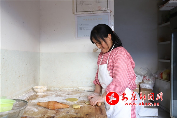 正在搟面的餅店大姐