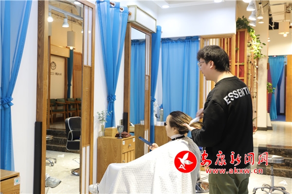 為客戶修剪頭發(fā)的理發(fā)師