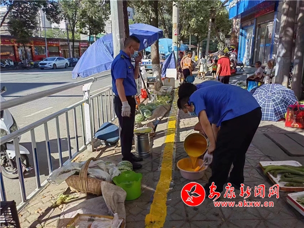 6月24日,記者來到江北大道安康農(nóng)商銀行(勞動支行)附近,在現(xiàn)場記者看到,安康市城市管理執(zhí)法局漢濱分局關(guān)廟執(zhí)法大隊相關(guān)工作人員正在針對張溝橋路段臨時攤位線毀損問題進(jìn)行及時補(bǔ)劃,同時針對擺攤戶進(jìn)行全國文明城市創(chuàng)建宣傳,并提出相關(guān)經(jīng)營要求,要求商戶不得越線經(jīng)營、不得影響行人通行及交通安全,自覺維護(hù)臨時攤點(diǎn)周邊的環(huán)境衛(wèi)生、秩序。“針對張溝橋路段附近村民自產(chǎn)自銷農(nóng)產(chǎn)品流動經(jīng)營叫賣現(xiàn)象,為規(guī)范管理張溝橋便民市場經(jīng)營秩序,方便附近居民生活出行,我們于今日對流動的商販攤位進(jìn)行劃線規(guī)范,劃線規(guī)范后,對不遵守相關(guān)規(guī)定出線占道經(jīng)營,影響行人通行及交通安全的行為,我們將依法給予相應(yīng)處罰措施。”安康市城市管理執(zhí)法局漢濱分局關(guān)廟執(zhí)法大隊綜合股股長陳超表示。
