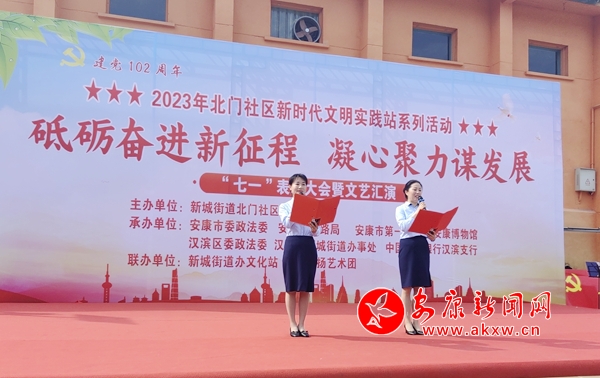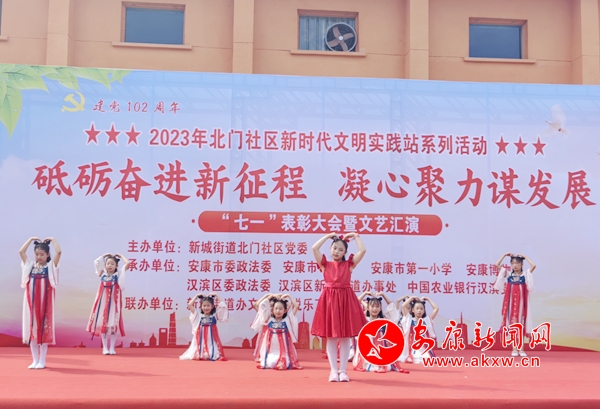 本網(wǎng)訊(記者 趙漪湉)6月27日上午,漢濱區(qū)新城辦北門(mén)社區(qū)黨支部聯(lián)合市委政法委、市公路局、市一小、市博物館、漢濱區(qū)委政法委、新城街道辦事處、農(nóng)行安康漢濱支行機(jī)關(guān)黨支部舉辦“砥礪奮進(jìn)新征程 凝心聚力謀發(fā)展”慶祝建黨102周年表彰大會(huì)暨文藝匯演。