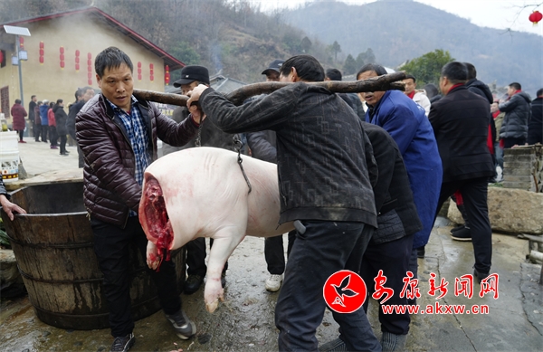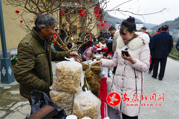 時(shí)至臘八,一大早,馬河社區(qū)的工作人員就開始熬煮臘八節(jié)的傳統(tǒng)美食——臘八粥,邀請(qǐng)游客們?cè)跍嘏闾鸬闹嘞阒校捕扰D八節(jié),迎接新年的到來;顒(dòng)現(xiàn)場(chǎng),殺年豬、吃庖湯、寫春聯(lián)、趕集市、辦年貨,濃濃的年味彌漫在整個(gè)鄉(xiāng)村。采蓮船、秧歌隊(duì)翩翩起舞,嗩吶聲、鑼鼓聲、聲聲入耳;魔芋豆腐、豆腐干、紅薯粉條、蜂蜜、臘腸……不少來自田間地頭的農(nóng)特產(chǎn)品紛紛亮相,受到游客們的追捧,大家爭(zhēng)相購買。