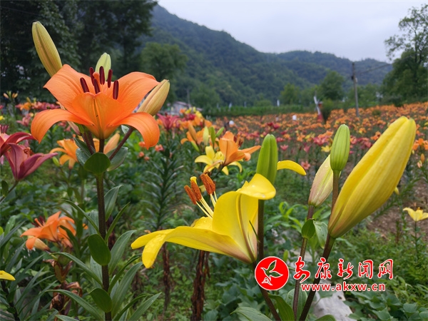絢爛的百合花在夏日的暖陽下恣意綻放,與周圍的碧巒、蒼翠的樹木、潺潺溪流,以及沉浸在喜悅中的人群,共同繪制了一幅生機勃勃、夏意正濃的生態(tài)風景畫,展現出一幅自然與人文和諧共生的美好圖景。