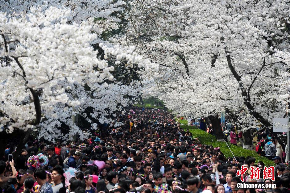 3月21日,武大櫻花盛開游客如織。當日,武大櫻花盛開的首個雙休日。長約200米的櫻花大道上1000多株櫻花競相綻放,吸引著數(shù)萬游客,使寧靜的校園變成了熱鬧的公園。中新社發(fā)張暢 攝Suf安康新聞網(wǎng)