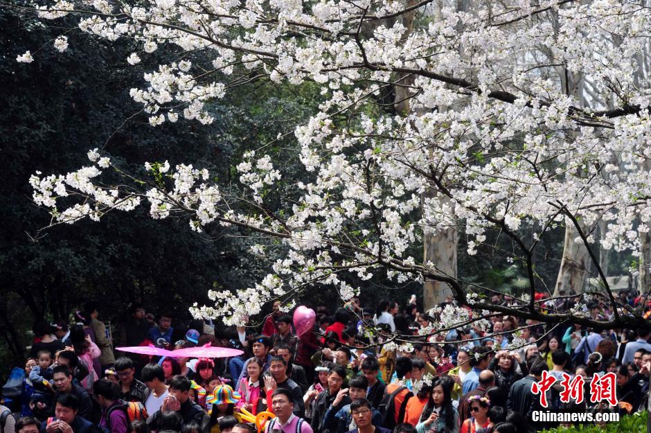 武大櫻花盡開放 游客擠爆校園