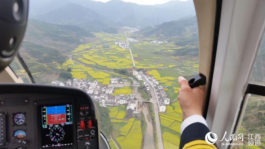 婺源推出乘直升機(jī)看油菜花 空中俯瞰金色花海