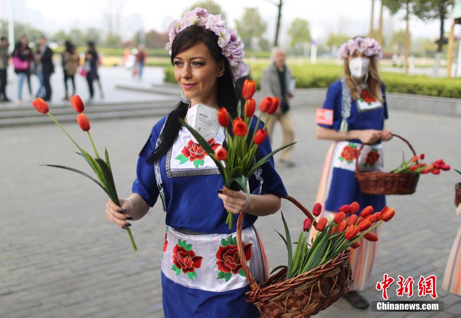 南京街頭靚麗“花仙子” 派發(fā)郁金香倡導(dǎo)綠色生活