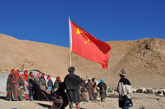 如果沒有詩人般的情懷,他怎么會驅(qū)車數(shù)百公里駐村蹲點(diǎn),顛簸在戈壁荒漠之中,眼里看到的居然是藍(lán)天白云,五星紅旗,遙遠(yuǎn)的雪山,赭色的巖石,飛奔的野驢,箭馳的藏羚羊。