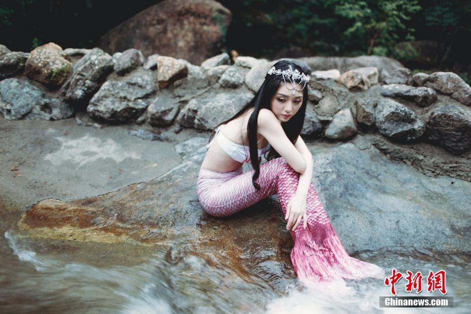 江西龍虎山上演真人版“美人魚Twins”