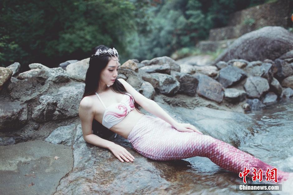 江西龍虎山上演真人版“美人魚(yú)Twins”