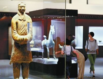 “很多都曾經(jīng)出現(xiàn)在我們的中小學(xué)課本里。”中國(guó)文物交流中心主任王軍介紹,此次展覽展品的來源主要有三個(gè),一部分是剛從美國(guó)的《秦漢文明》展撤下來返京,一部分是從首都博物館剛閉幕的《美好中華》展中挪到國(guó)博,還有一部分是全國(guó)各地征調(diào)的!昂芏辔奈锸钱(dāng)?shù)氐拿餍俏奈,有些是直接從展線上撤下來的,所以湊齊展出非常不易!