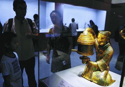 特展上的長(zhǎng)信宮燈。本報(bào)記者 李繼輝攝