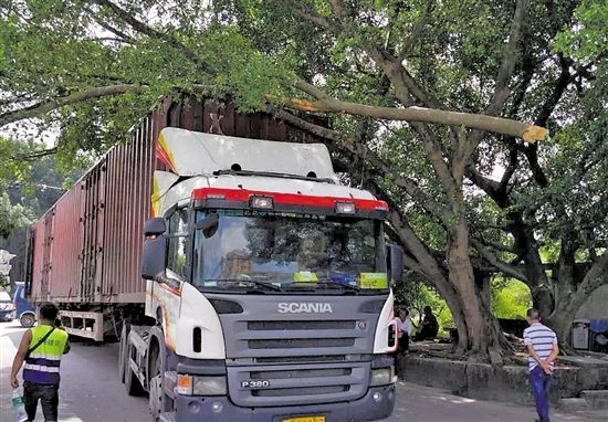 記者了解到,司機盛先生是江蘇蘇州人,他是從江蘇運貨到花東來,走到花東鎮(zhèn)竹湖村村口才發(fā)現(xiàn)走錯了路。當(dāng)時感覺方向不對后,準(zhǔn)備掉頭,沒想到碰到了路邊的一棵大榕樹,把榕樹的樹枝撞斷了。