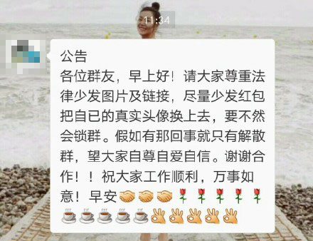 【真相】9月21日,桂林網(wǎng)警表示,網(wǎng)傳“微信群要求上傳個人真實頭像”的信息并不屬實,國家并未出臺明文規(guī)定要求網(wǎng)民使用自己的真實頭像,用戶使用及更換個人微信頭像是公民基本權(quán)利,微信平臺也并未提出相關頭像設置要求。[詳情]