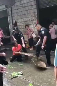 【真相】當日,中共建水縣委宣傳部通過官方微博表示,經(jīng)核實,視頻所示實為廣東省韶關市湞江區(qū)一市場管理人員與菜販發(fā)生沖突的事件。據(jù)韶關公安通報,已依法對市場管理人員龔某海作出行政拘留處罰。[詳情]