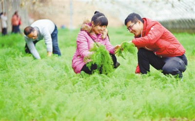 圖為游客在河北省衡水市桃城區(qū)鄧莊鎮(zhèn)一家庭農(nóng)場(chǎng)采摘茴香。