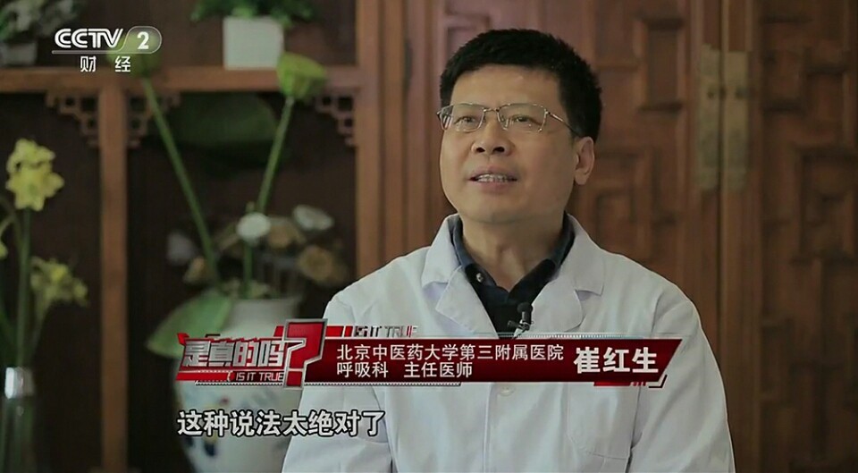 北京中醫(yī)藥大學第三附屬醫(yī)院呼吸科主任醫(yī)師崔紅生表示:“這種說法太絕對了,是假的!
