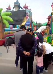 網(wǎng)傳的10秒長的小視頻顯示,在一個游樂場中,一名年輕女子坐在地上不斷哭喊,在其旁邊的游樂設(shè)施上,一名男子抱著一個孩子,地上滿是鮮血。視頻所配文字稱:“這是某地今天發(fā)生的,以后不要帶孩子坐這個玩具了!”其中,“某地”被傳為河北石家莊、云南大理、陜西漢中、湖北孝感等多地的游樂場,引發(fā)網(wǎng)民關(guān)注熱議。