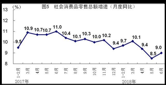 上半年,全國居民人均消費(fèi)支出9609元,同比名義增長8.8%,比一季度加快1.2個百分點(diǎn),扣除價格因素實(shí)際增長6.7%,加快1.3個百分點(diǎn)。其中,城鎮(zhèn)居民人均消費(fèi)支出名義增長6.8%,加快1.1個百分點(diǎn);農(nóng)村居民人均消費(fèi)支出名義增長12.2%,加快1.2個百分點(diǎn)。上半年,社會消費(fèi)品零售總額180018億元,同比增長9.4%,增速比一季度回落0.4個百分點(diǎn)。按經(jīng)營單位所在地分,城鎮(zhèn)消費(fèi)品零售額154091億元,增長9.2%;鄉(xiāng)村消費(fèi)品零售額25927億元,增長10.5%。按消費(fèi)類型分,餐飲收入19457億元,增長9.9%;商品零售160561億元,增長9.3%。消費(fèi)升級類商品銷售增長較快,限額以上單位家用電器和音像器材類、通訊器材類和化妝品類同比分別增長10.6%、10.6%和14.2%,分別比上年同期加快0.2、0.5和2.9個百分點(diǎn)。6月份,社會消費(fèi)品零售總額同比增長9.0%,比上月加快0.5個百分點(diǎn)。