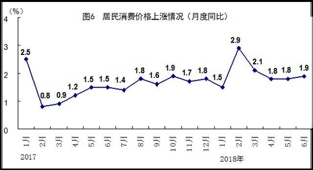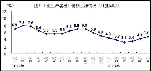 上半年,全國居民消費(fèi)價格同比上漲2.0%,漲幅比一季度回落0.1個百分點(diǎn)。分類別看,食品煙酒價格同比上漲1.4%,衣著上漲1.1%,居住上漲2.3%,生活用品及服務(wù)上漲1.6%,交通和通信上漲1.2%,教育文化和娛樂上漲2.1%,醫(yī)療保健上漲5.5%,其他用品和服務(wù)上漲1.1%。6月份,全國居民消費(fèi)價格同比上漲1.9%,漲幅比上月擴(kuò)大0.1個百分點(diǎn),環(huán)比下降0.1%。上半年,全國工業(yè)生產(chǎn)者出廠價格同比上漲3.9%,漲幅比一季度擴(kuò)大0.2個百分點(diǎn);全國工業(yè)生產(chǎn)者購進(jìn)價格同比上漲4.4%。6月份,全國工業(yè)生產(chǎn)者出廠價格同比上漲4.7%,漲幅比上月擴(kuò)大0.6個百分點(diǎn),環(huán)比上漲0.3%;全國工業(yè)生產(chǎn)者購進(jìn)價格同比上漲5.1%,環(huán)比上漲0.4%。
