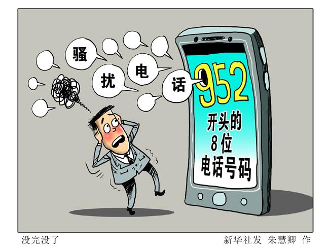 近來,不少手機(jī)用戶吐槽:接到以952開頭的8位電話號碼,或者沒完沒了地放錄音推銷,或自稱公司客服告知你中獎(jiǎng)了……即使把這個(gè)號碼拉入“黑名單”,但不久又有同類電話不斷打入。