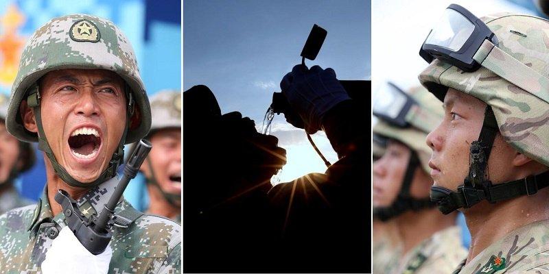 10:00,一只知了落在正在進行軍姿訓練的戰(zhàn)士臉上。