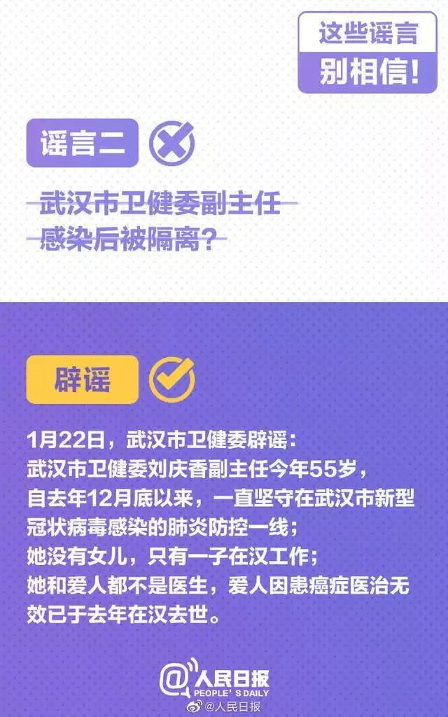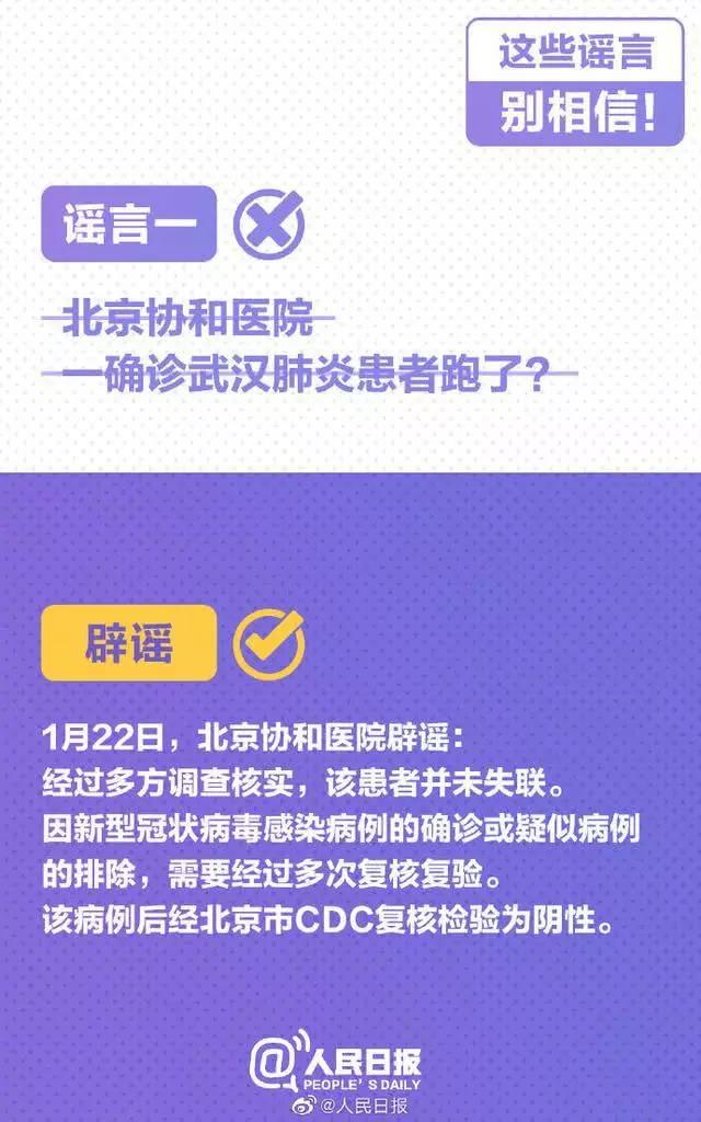 北京協(xié)和醫(yī)院一確診武漢肺炎患者跑了?武漢市衛(wèi)健委副主任感染后被隔離?成都男子經(jīng)武漢停留10分鐘被感染新型冠狀病毒?新型冠狀病毒感染的肺炎引發(fā)關(guān)注,與之同樣贏得“關(guān)注”的還有不少謠言。戳圖了解不信謠,不傳謠!轉(zhuǎn)擴(kuò)!