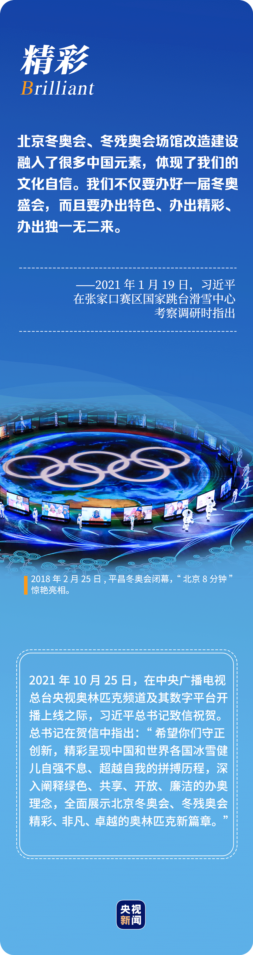 冰雪為媒、長城為橋,再過100天,全球的目光將再度聚焦中國北京,奧林匹克的激情與夢想將再度在奮進的中國點燃。讓我們透過BEIJING“預(yù)見”冬奧!