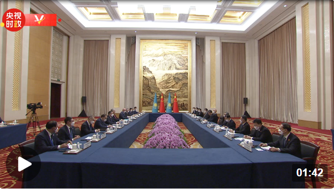 習(xí)近平說,熱烈歡迎托卡耶夫總統(tǒng)來華出席中國(guó)-中亞峰會(huì)并進(jìn)行國(guó)事訪問。很高興在西安接待托卡耶夫總統(tǒng)。今天是你70歲生日,再次祝你生日快樂。在這個(gè)特殊日子里,你來華進(jìn)行國(guó)事訪問,彰顯了兩國(guó)關(guān)系的高水平,也再次印證了你同中國(guó)的不解之緣。