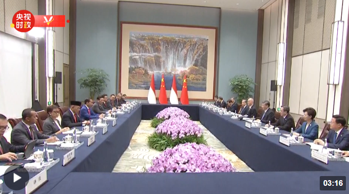 習(xí)近平指出,歡迎老朋友佐科總統(tǒng)先生來華出席成都大運(yùn)會(huì)開幕式。去年,我們在3個(gè)多月時(shí)間里實(shí)現(xiàn)互訪,共同開啟兩國共建命運(yùn)共同體的新篇章。