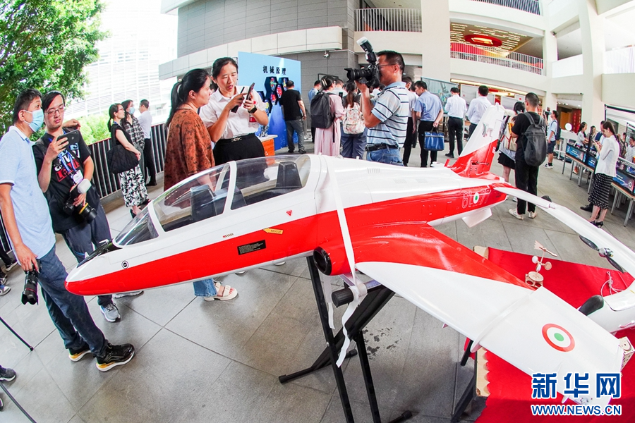 9月12日,在福州第三中學(xué)展出的師生參與設(shè)計(jì)的無人機(jī)。新華網(wǎng) 肖和勇 攝