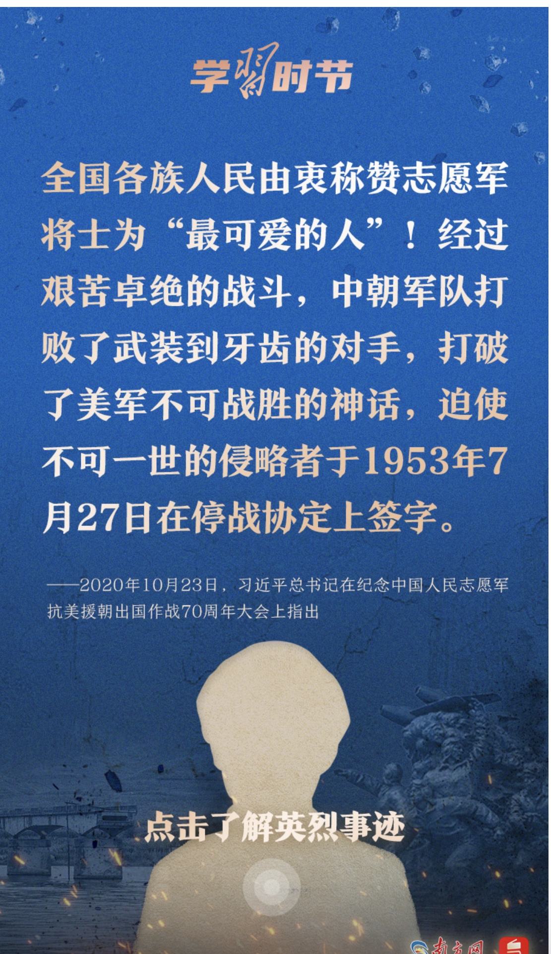學(xué)習(xí)時(shí)節(jié)|“抗美援朝戰(zhàn)爭(zhēng)偉大勝利,將永遠(yuǎn)銘刻在中華民族的史冊(cè)上!”