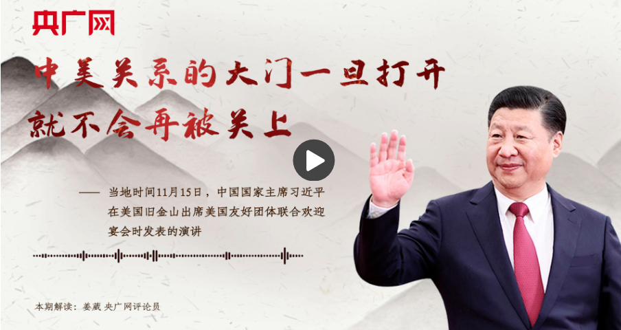 這段話出自當(dāng)?shù)貢r(shí)間11月15日中國(guó)國(guó)家主席習(xí)近平在美國(guó)舊金山出席美國(guó)友好團(tuán)體聯(lián)合歡迎宴會(huì)時(shí)發(fā)表的演講。它深刻闡明了不同時(shí)代推進(jìn)中美友好事業(yè)發(fā)展的力量源泉在于兩國(guó)人民。