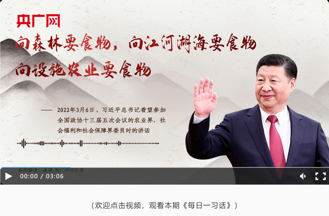 習近平:要向森林要食物,向江河湖海要食物,向設施農業(yè)要食物,同時要從傳統(tǒng)農作物和畜禽資源向更豐富的生物資源拓展,發(fā)展生物科技、生物產業(yè),向植物動物微生物要熱量、要蛋白。