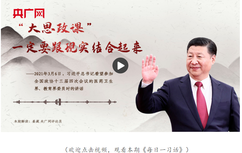 這句話出自2021年3月6日習近平總書記看望參加全國政協(xié)十三屆四次會議的醫(yī)藥衛(wèi)生界、教育界委員時的講話。