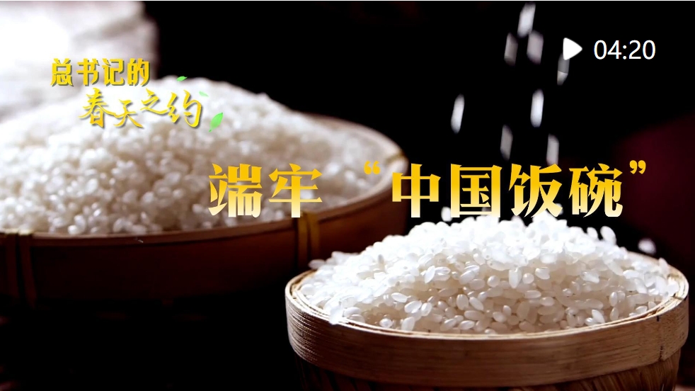 把穗觀粒,察土問技,習近平總書記始終惦念糧食安全。2018年9月,總書記再次踏上這片沃土。他走進稻田,拿起一把稻穗,看稻粒、觀成色。他說:“中國人要把飯碗端在自己手里,而且要裝自己的糧食。”